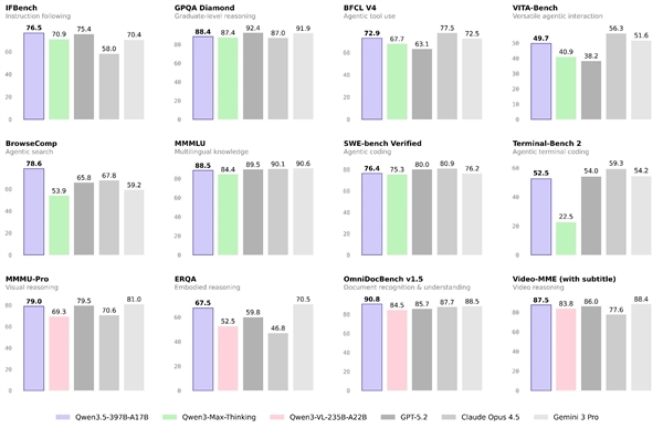 与前几代的千问大语言模型不同,千问3.5实现了从纯文本模型到原生多模态模型的代际跃迁。